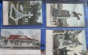 A brown ring folder containing 142 authentic vintage Postcards complete with postage stamps and postmarks on those posted.