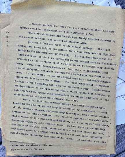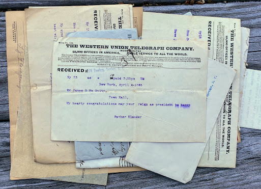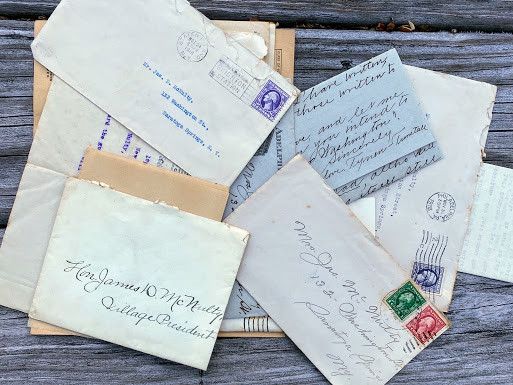 A collection of correspondence, tradesmen's bills (including printers and newspapers), cancelled checks, check books, records of savings accounts. [circa 1905 - 1920], including a group of letters from McNulty to his wife describing a trip to Washington, DC in the Fall of 1918, apparently in search of a Federal appointment in Saratoga Springs. All in a single early file box (a lot).