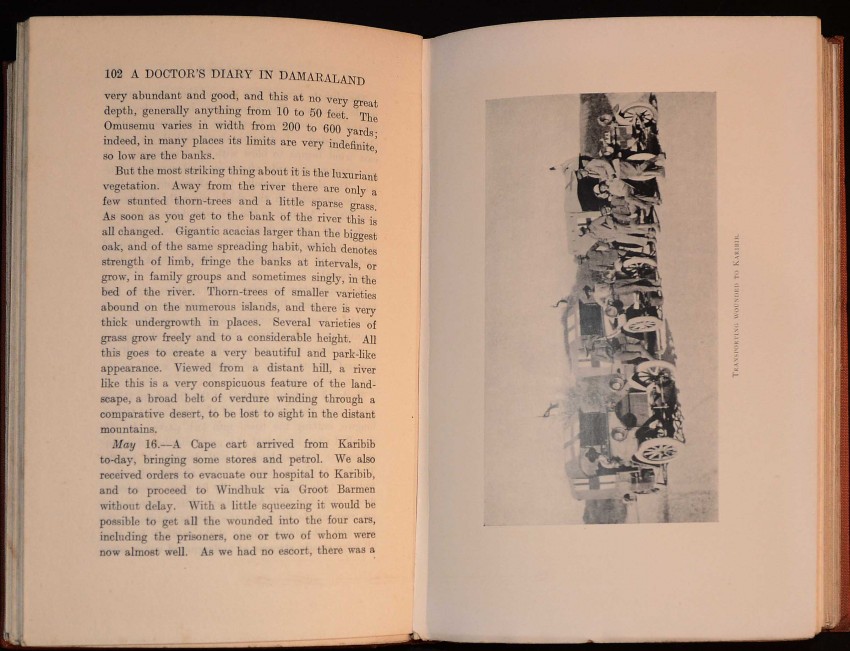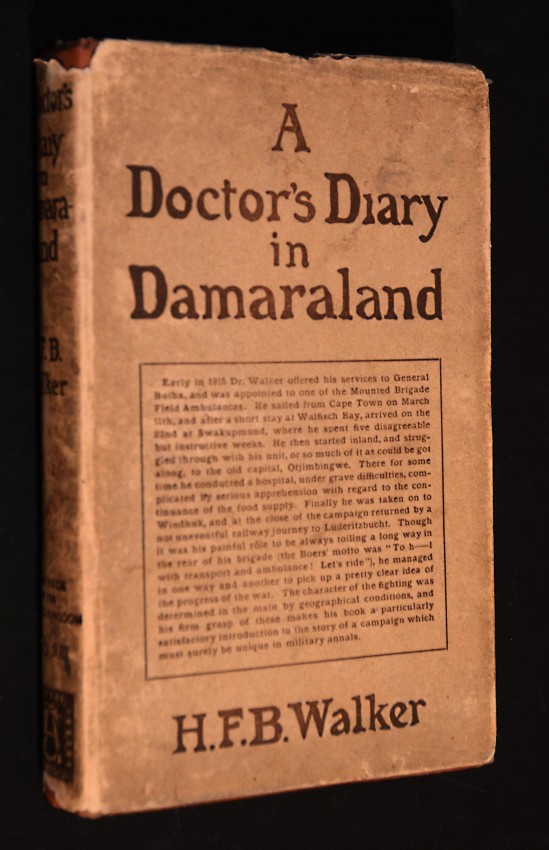 A fine unmarked unfoxed copy of the scarce first edition of this title in the rare original dustwrapper. The author's reminiscences of the time he served in the Mounted Brigade Field Ambulance during the campaign in South West Africa in the First World War. 207pp. plus 12pp. adverts at the rear. Eight black and white photographic plates.