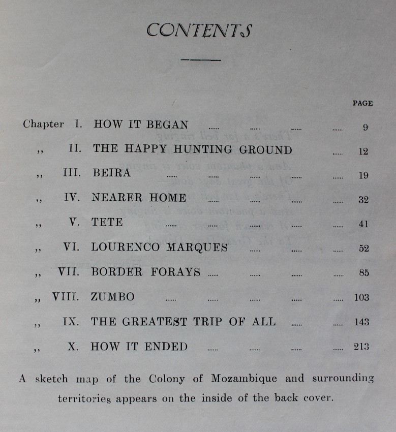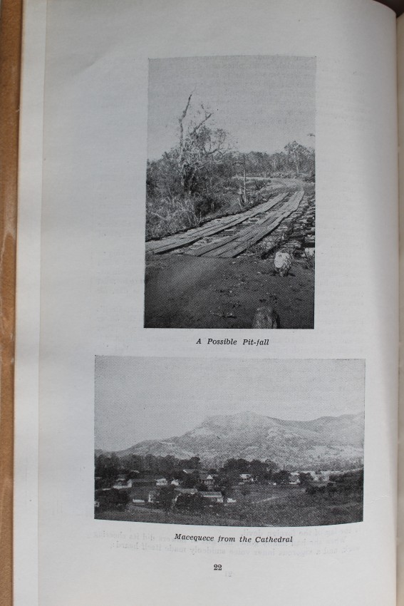 A sketch map of the Colony of Mozambique and surrounding territories appears on the inside of the back cover. 213 pages with many black and white pictures. Bound in cloth and in good condition. Inscription of previous owner in front.