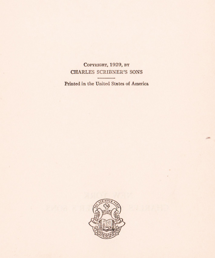 First edition first issue: 355 pages, black cloth boards with gold paper title labels on the upper cover and spine – the labels are slightly worn, book plate on front paste down end paper, publisher’s device on the verso of the title page, without the disclaimer notice, the fore-edge is uncut, lacking the dust jacket, a good copy.
