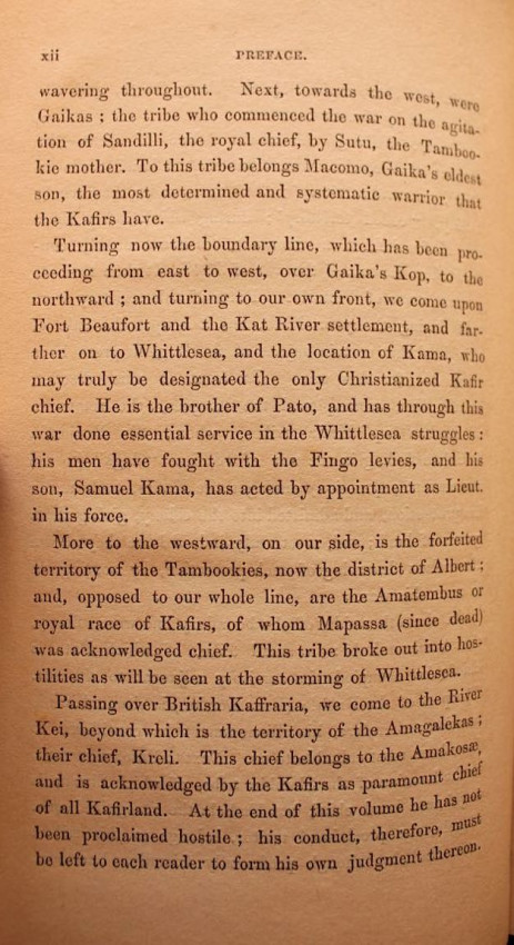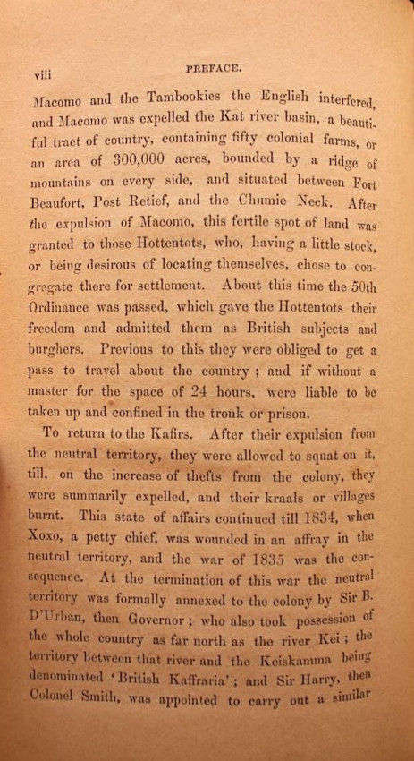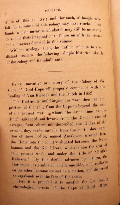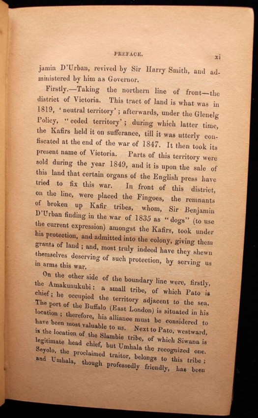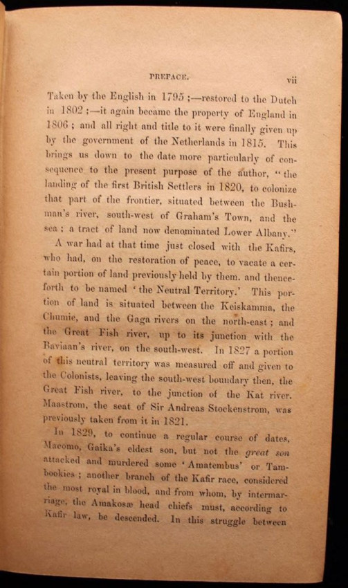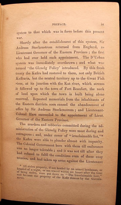 'The account of the Kaffir War is in the form of a long poem consisting of 202 pages, and of the minor pieces, Fragment I. is entitled "Bachelor's Life on a Sheep Farm"; Fragment II. "On Choosing a Wife. A Sequel to Bachelor's Life"; Fragment III. "A Batchelor's Soliloquy, or A Dream of Married Life." There are a number of notes to "A Feature in South African Frontier Life," which give considerable information regarding the Eastern Province and Kaffraria.