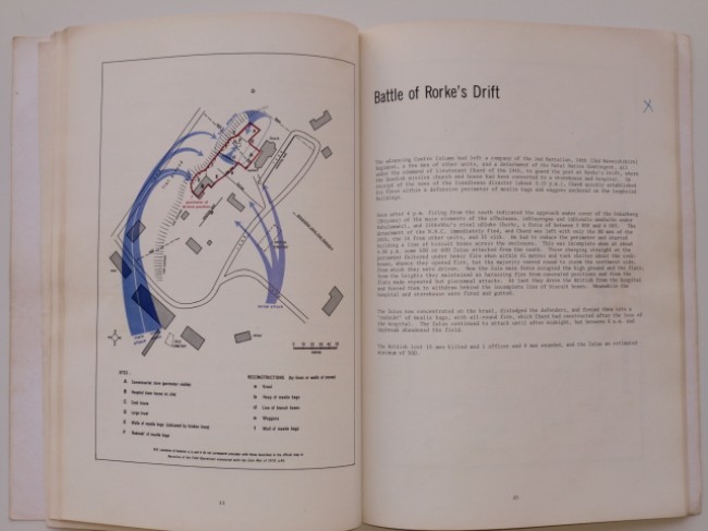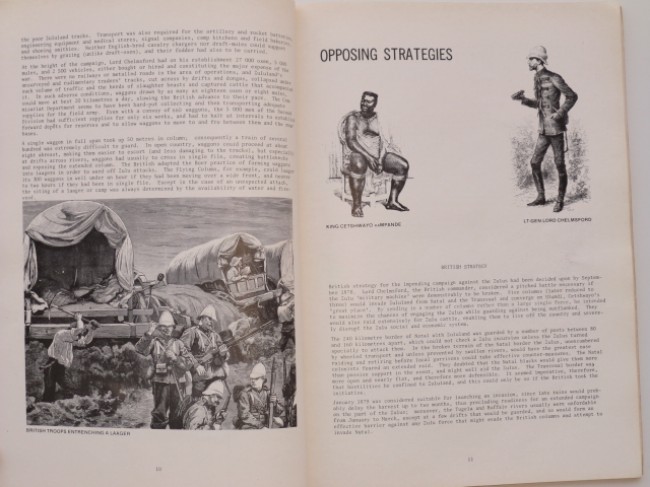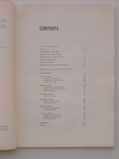 88 page guide (with maps) to the various battles of the conflict between the Zulus and the British, due to the british invasions of Zululand. Well illustrated with maps, plans, forts, covering the battles of Nyezane, Gingindlovu, Isandlwana, Rorke's Drift, Ntombe, Ulundi, Hlobane and Nkambule. References and index; now a rather scarce book.