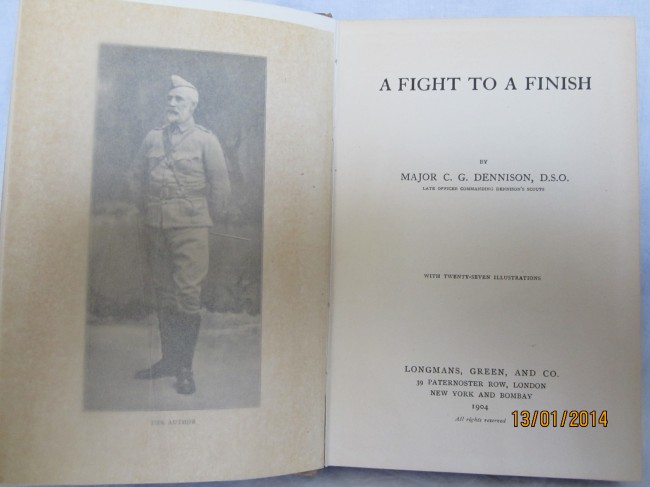 prelims + 192 pages, frontispiece portrait, 16 photographs : Commander of the Dennison's Scouts on the Commencement of the Transvaal War of 1881 & the Great Boer War 1899-1902; Mendelssohn I.448; original boards, crest to front cover, a very good copy of the FIRST EDITION