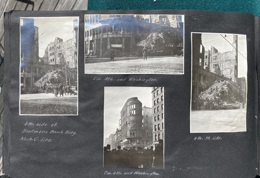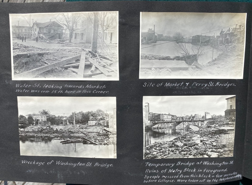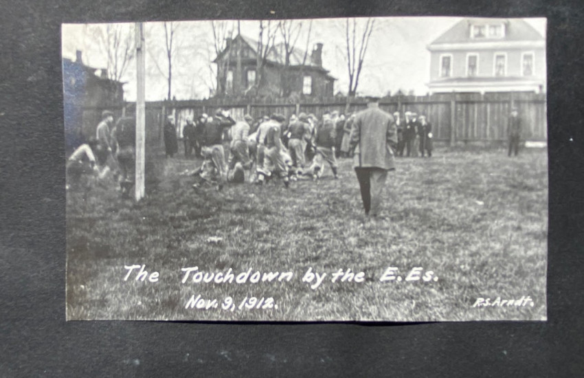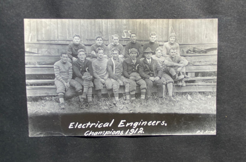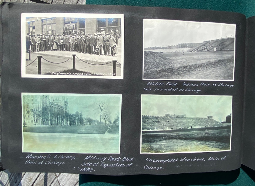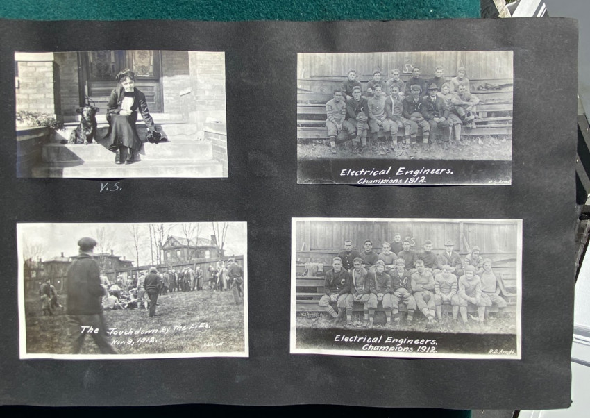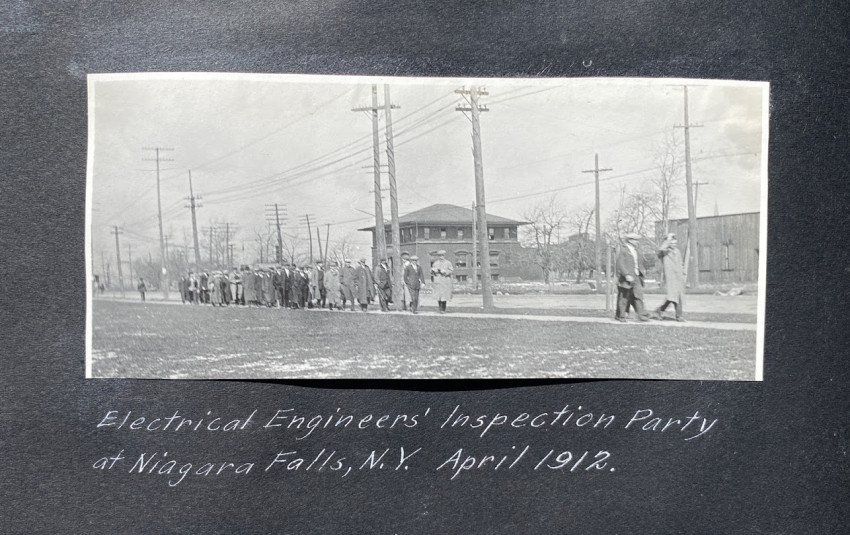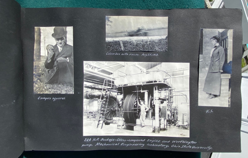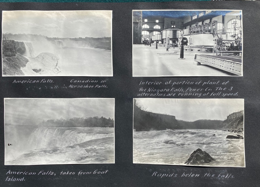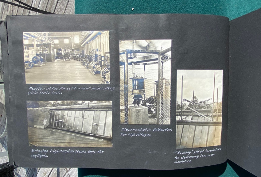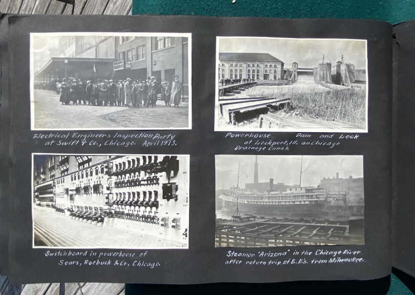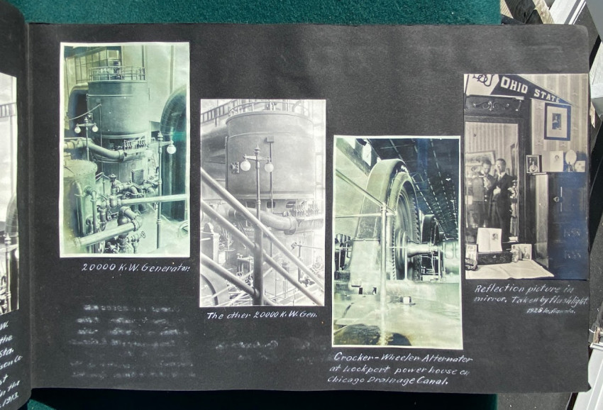 A fine album of photographs by Arndt, recording his life and times: disasters (the March 1913 Great Flood in Ohio; September 1913 fire in Hot Springs, Arkansas; the wreck of a 'coal unloader' in Milwaukee; burnt out buuildings), friends (and family, both from College and the firms for which Arndt worked), colleges (Pittsburg University, University of Wisconsin, University of Chicago, Ohio State University) , professional life, vacations and outings (Niagara Falls, Columbus Auto Races in 1912, Electrical Engineers football team, powerplant at Sears, Roebuck, & Co. in Chicago, various other interior views of generating plants). [Various: 1912- 1928]. Oblong folio (9 x 13 3/4in; 228 x 349mm), 42 black thick paper leaves, 28 of which are mounted with circa 247 photographs by Arndt (and others?), many with accompanying explanatory captions. (A few leaves deatached and loosely inserted). Contemporary limp leather binding (damage to exytremities)