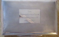 A fine engine turned Silver Cigarette Box. Presented and engraved for the 50th Anniversary of the founding of the Consolidated Gold Fields of South Africa, that existed from 1887 to 1988,
