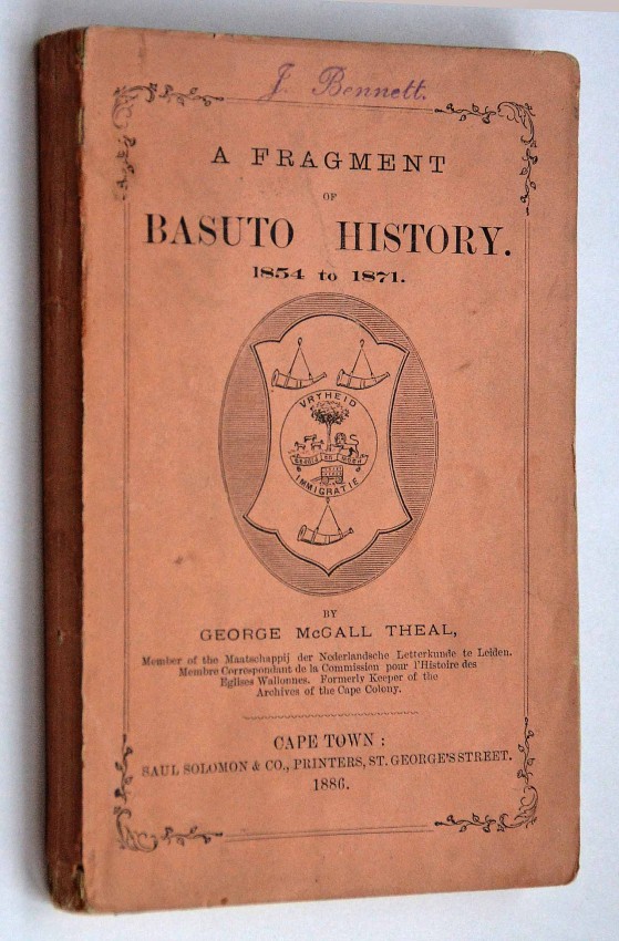 The very scarce first edition of this small fragile book. 12mo.(165x105mm). liv (54)pp. Introduction followed by 188pp. of further text entitled "The War of 1865 between the Free State and Basutoland and the Events Which Led to It". In the original thin printed pink paper wraps.