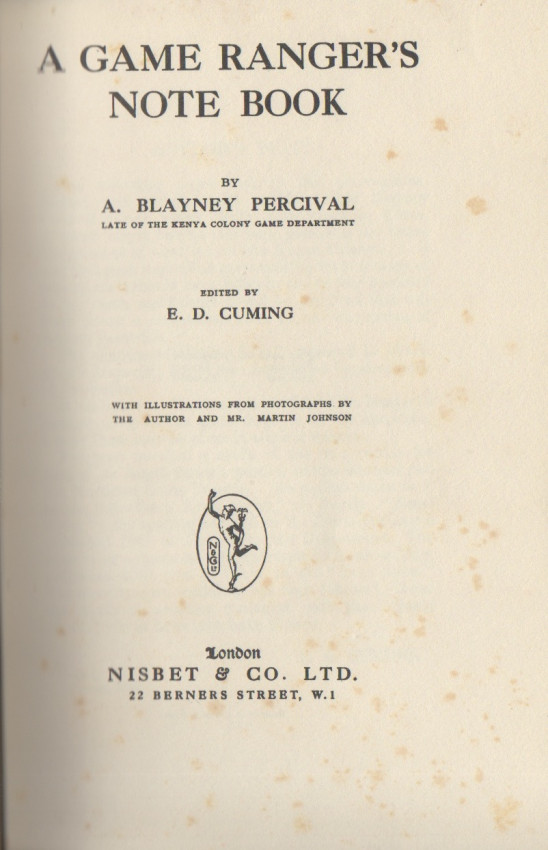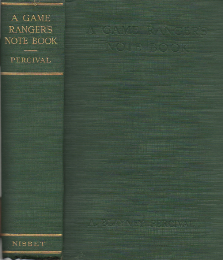 Percival spent thirty years in Africa, much of it as a member of the Kenya Colony Game Department. This book reflects his vast knowledge of the game and its habitat, with important descriptions of the terrain and numerous hunting adventures. The various species of Kenyan game are presented in chapters, and includes lion (7 chapters); leopard and cheetah; elephant (2); rhinoceros (2); hippo; buffalo (2); as well as chapters on plains game. First edition, third printing. Original green cloth with bright gilt spine titles. Tiny split to spine head, square corners. Original endpapers firm and tight. Well illustrated with photo plates and folding map. Scattered light foxing. A very good, tight copy and uncommon in such bright condition,