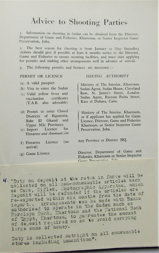 Tipped-in ephemera of "Duty on deposit" for Safari Imports.