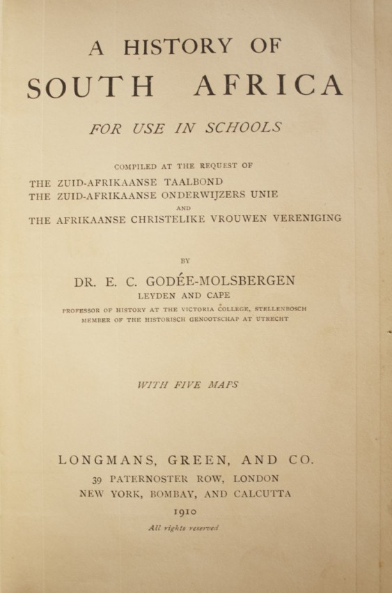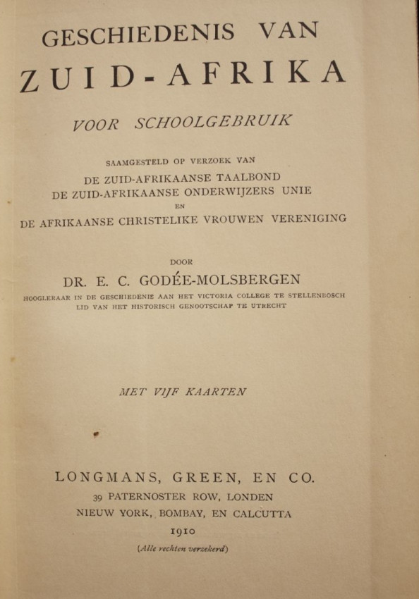 Dr. E. C. Godée-Molsbergen was a Professor in History at the Victoria College at Stellenbosch, which is today the University of Stellenbosch.