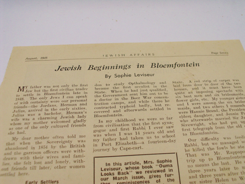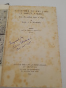 An old book - published in 1935 - by the South African Jewish Board of Deputies. An informative and well documented book. Inscribed by author. Hard cover. Tight binding. Several black and white photographic plates. An interesting early news clipping from the Zionist Record of 1948 is left/included in the back flap of the dust jacket. Black linen cloth with gilt title on spine. Tanning on pages and usual signs of age such as spotting and foxing. Some age browned pages but all intact. Book shows minimal shelf wear with D/W scuffed on top and bottom edges and sunbleached spine. Black & white photographic plates. 288 pages(150mmx220mm).