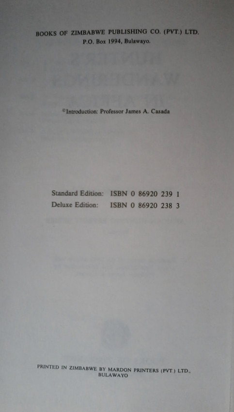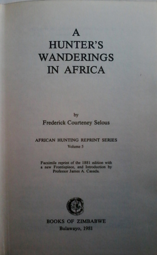 A Hunter's Wanderings In Africa., By F. C. Selous., African Hunting Reprint Series, Volume 5., Facsimile reprint of the 1881 edition with a new Frontispiece, and Introduction by Professor James A. Casada. Books Of Zimbabwe Publishing CO. (PVT.) 1995.