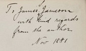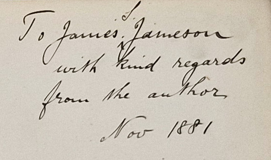 Inscribed on the half title page, 'To James S. Jameson with kind regards from the author Nov 1881'