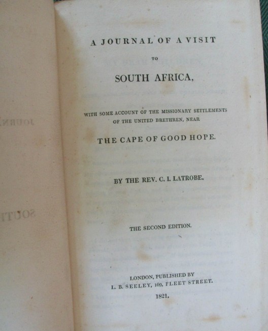 A Journal of a Visit to South Africa, With Some Account of the Missionary Settlements of the United Brethren, near The Cape of Good Hope.Second Edition.Published by L.B.Seeley-London 1821.