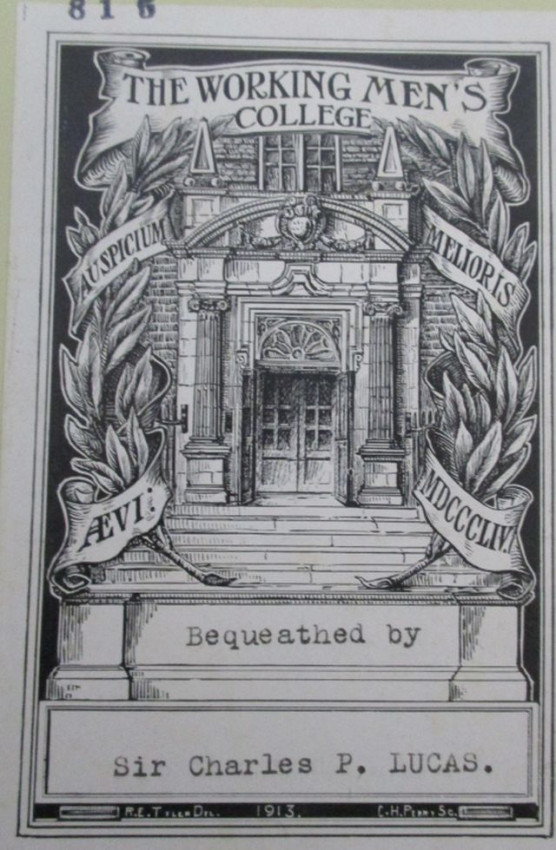 Original blue cloth boards with gilt lettering to spine and gilt stamp of the shop "Victoria". Wear to spine which is discoloured. Front boards has tamp of "Working Men's College Library" . There is a sticker on fep with "The Library Rules". On the past down is a sticker denoting that the boo was bequested by Sir Charles P Lucas.