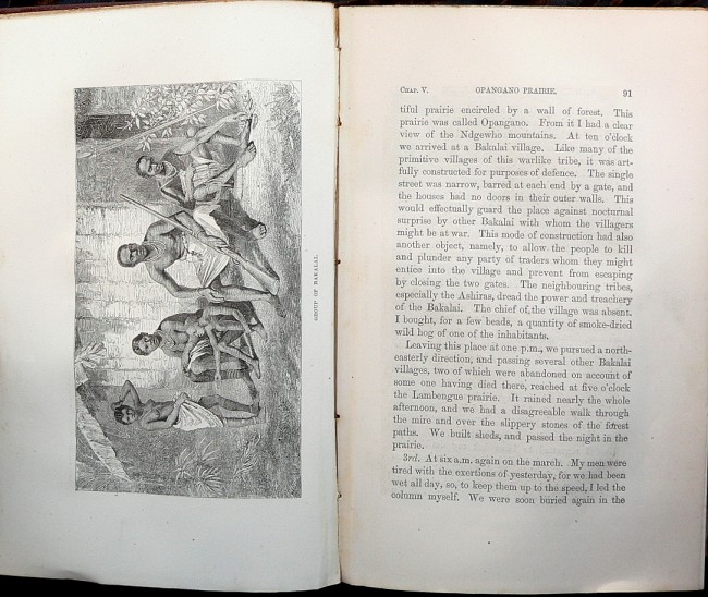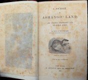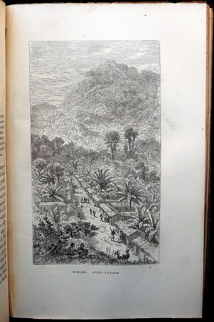 The account of Du Chaillu’s second African expedition. ‘In 1863 Du Chaillu returned to Gabon, did a little trading, assembled a caravan well equipped with scientific instruments and cameras and hired seventy porters and a few guides. He met with Massangou people (in what he called Ashango) 200 miles southeast of the Gabon River and visited a pygmy settlement nearby. When one of his men accidentally shot two Massangous, his party was forced to abandon many supplies and flee for their lives. He was wounded by two poisoned arrows. Fortunately, he saved his extensive notebooks. Back in England in 1865, Du Chaillu lectured more successfully and prepared 'A journey to Ashango-Land' for publication in 1867. Many readers disputed his sensational descriptions of pygmies until later explorers asserted that they were substantially accurate’ (ANB).Hosken p. 63.