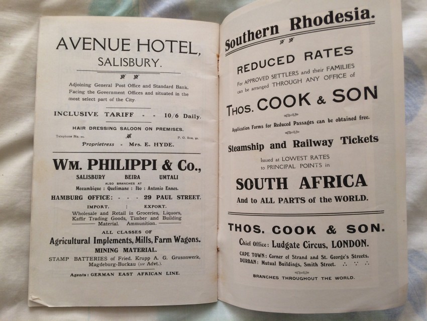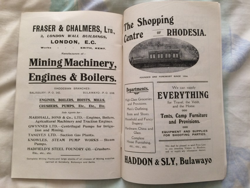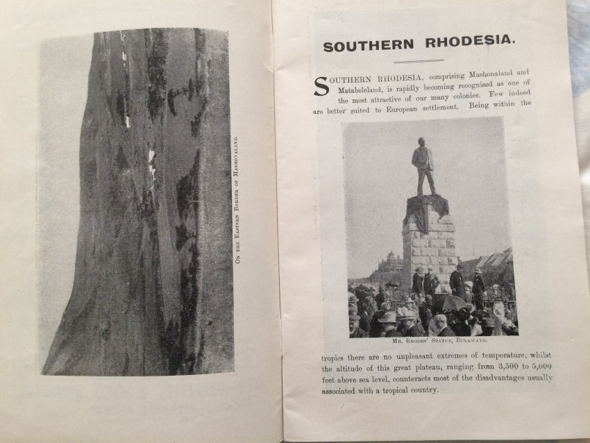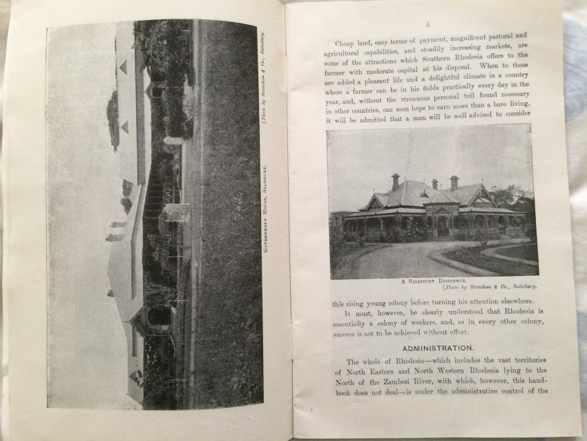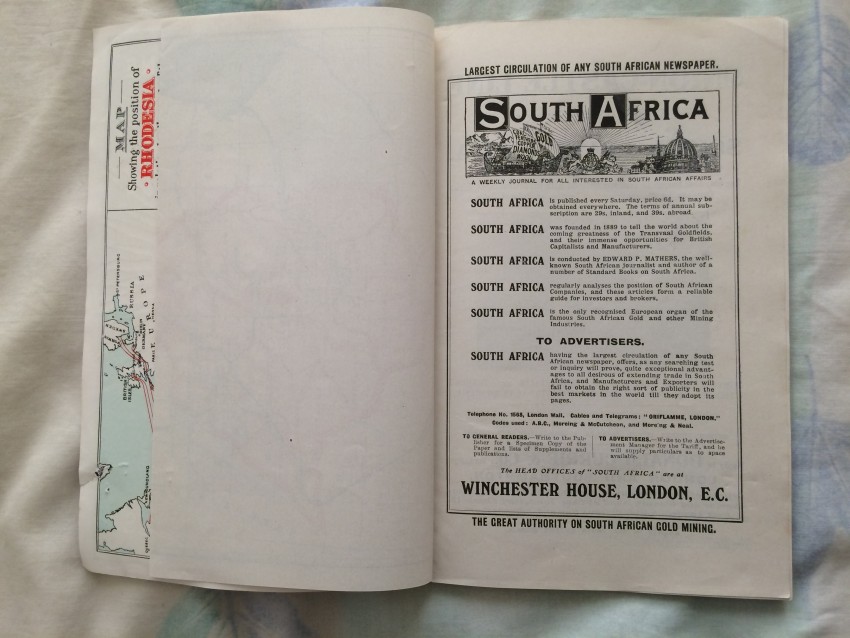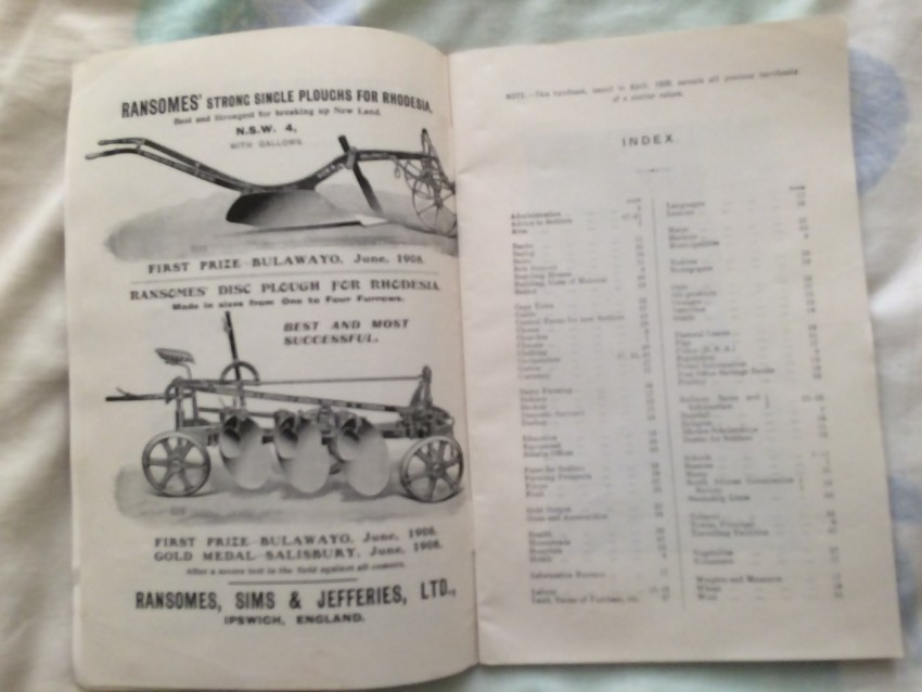 1. A Land of Sunshine. Southern Rhodesia. Unique opening for Farmers. Millions of Acres. Published by British South Africa Company, London. 1909. Near new condition apart from rusty staples. Later edition