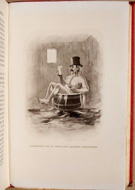 CONDITION DETAILS: The binding has some wear and soiling and the lower board has a water stain and a small hole along the rear hinge. The front free end paper is browned, see image, and has a pen name. There is light spotting/foxing on the text pages but the illustrations are clean.