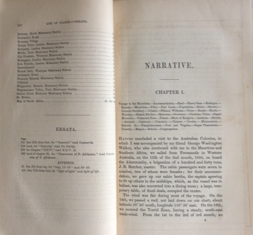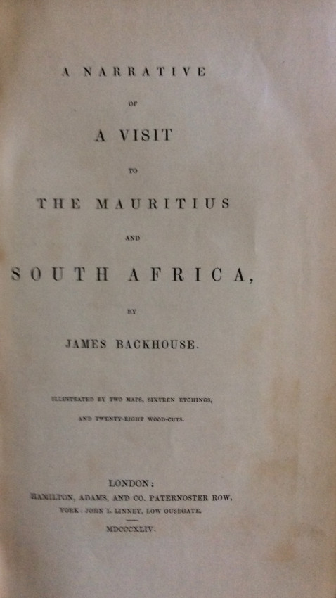 - This Mauritius and South Africa visit followed a similar one to Australia two years earlier; the volumes covering both visits were published in the same year (1844)