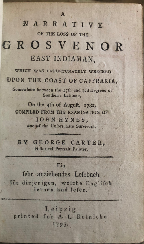 Quarter leather binding with raised bands to the spine and gold gilt. Marbled end pages. A small piece has been removed from the top of the second blank end page. Two minor inscriptions and age-related marks. An unusual edition which has some German on the preliminary pages and at the back of the book as well as a German stamp mark. 129 pages of English text.