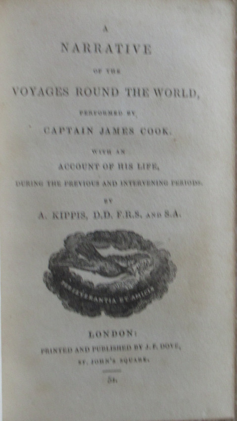 Frontispiece by H Courbold, Cook's Voyage & Life-Illustrated by H.Courbold and W.Finden, Title with Title engraving- Per Servantia Et Amicis. Dedication to the King, dated 13th June 1788. Preface. vii plus 412 pages text-- Appendix-The Morai- An Ode by Miss Helen Maria Williams- 416 complete
