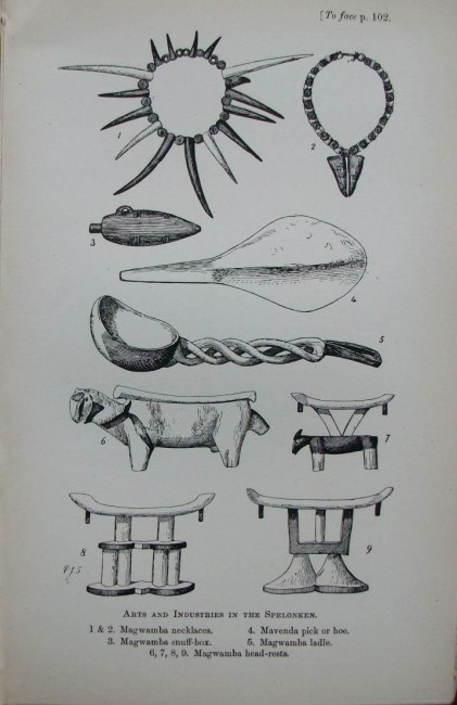 Original brown illustrated boards with falcon on telegraph pole. Blocking in gilt to front board, and gilt lettering to spine. Frontispiece-Makapan's Cave-tissue guard.Title. Dedication. Preface. Contents and list of illustrations xvi plus 277 pages plus 29 illustrations. 8 vo 1892.