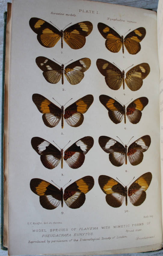xvii, 333 pp, 87 illustrations including full-page, 2 color plates of butterflies, each with tissue guard and letterpress, tables, folding charts, large folding map. In original green boards with gilt tilting on spine and vignette embossed on upper cover. Internally clean with uncut page ends. Two names on fep & ffep and also a newspaper clipping pasted regarding the death of this author.