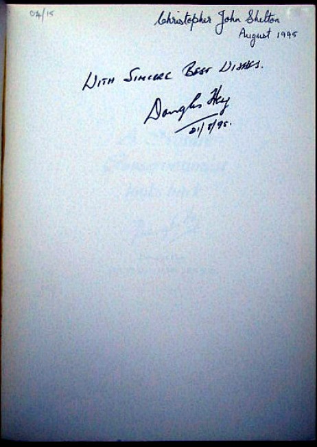 280pp. Varnished board cover. Illustrated in BW. Inscribed and signed on front free EP and signed again on title page by Douglas Hey.