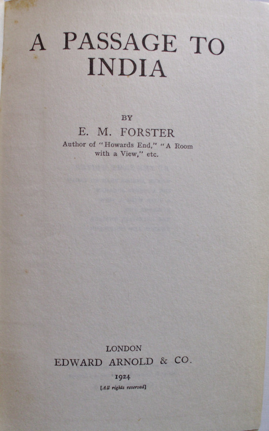A Passage To India., By E. M. Forster , Published By Edward Arnold & CO. London , 1924, First British Edition.