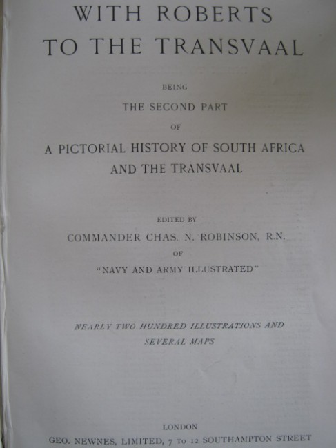 This book has an anomalous front cover. The book\'s actual title is \"A Pictorial History of South Africa and the Transvaal\" and it is divided into two parts, bound together, of which the second has the subtitle \"With Roberts in the Transvaal\", which was the cover wording chosen by the publishers (see images).