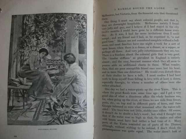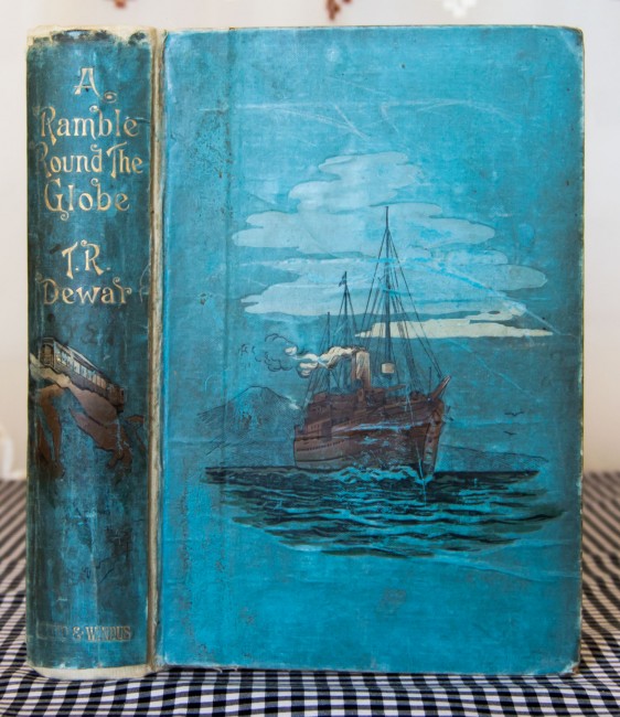 Light-blue cloth-boards with a steamship and Mt Fuji printed in colour on the upper board and a mountain railcar, also in colour, and gilt lettering on the spine. Brown leaf-pattern printed endpapers. Tissue-protected halftone frontispiece photograph of the author. Decorated title-page printed in red and black. xv + 316 pp of text, profusely illustrated in b/w + 32 pp of publisher's announcements.