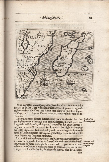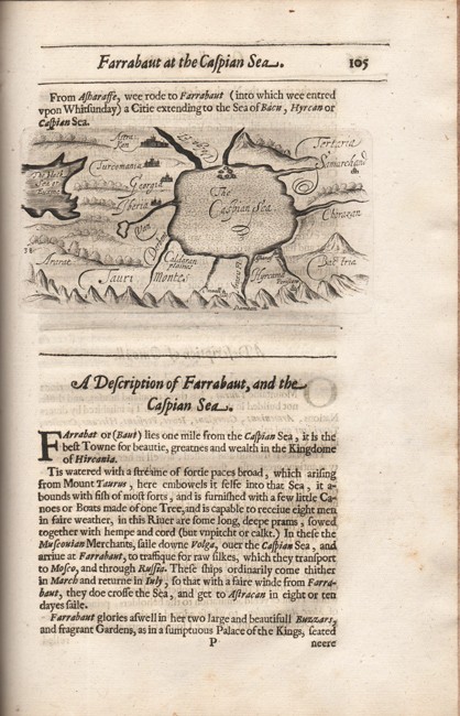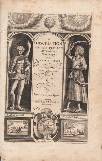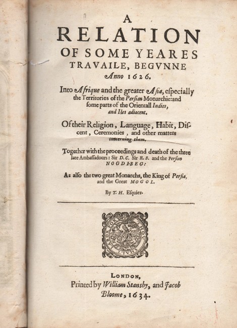 'In 1627 William Herbert, 3rd Earl of Pembroke, procured his appointment in the suite of Sir Dodmore Cotton, then starting as ambassador for Persia with Sir Robert Shirley. Sailing in March they visited the Cape, Madagascar, Goa and Surat; landing at Gambrun (10 January 1628), they travelled inland to Ashraf and thence to Kazvin, where both Cotton and Shirley died, and whence Herbert made extensive travels in the Persian Hinter land, visiting Kashan, Bagdad, etc. On his return voyage Herbert touched at Ceylon, the Coromandel coast, Mauritius and St Helena. He reached England in 1629, travelled in Europe in 1630–1631, married in 1632 and retired from court in 1634 (his prospects perhaps blighted by Pembroke's death in 1630), after this he resided on his Tintern estate…..'