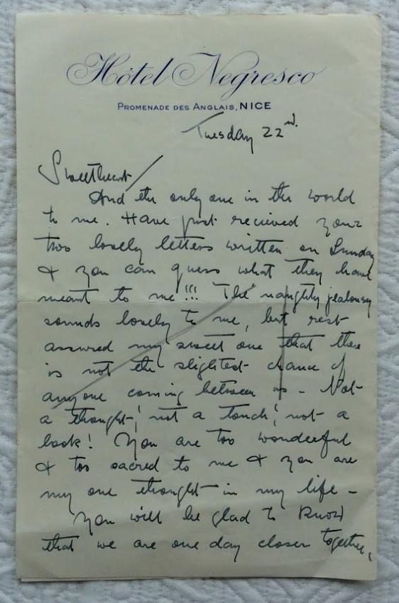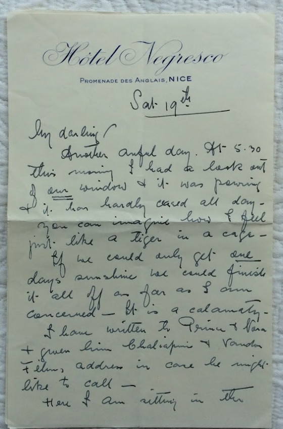 A series of 28 autograph letters (signed with initial ‘G.’), from the South of France, to his mistress (and future wife) Blanche Littler. All are written during the filming of the ‘Adventures of Don Quixote’ (released in 1933), most seem to be unpublished.[September – November 1932]Most 8vo., a few 4to, with a total of 62 pages. Eight with associated envelopes. Provenance: estate of Lady Blanche Robey.