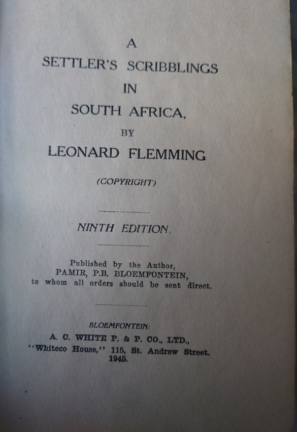 A humorous book of poetry, prose and letters written by the author whilst in the veldt to while away the solitary hours after his daily work.