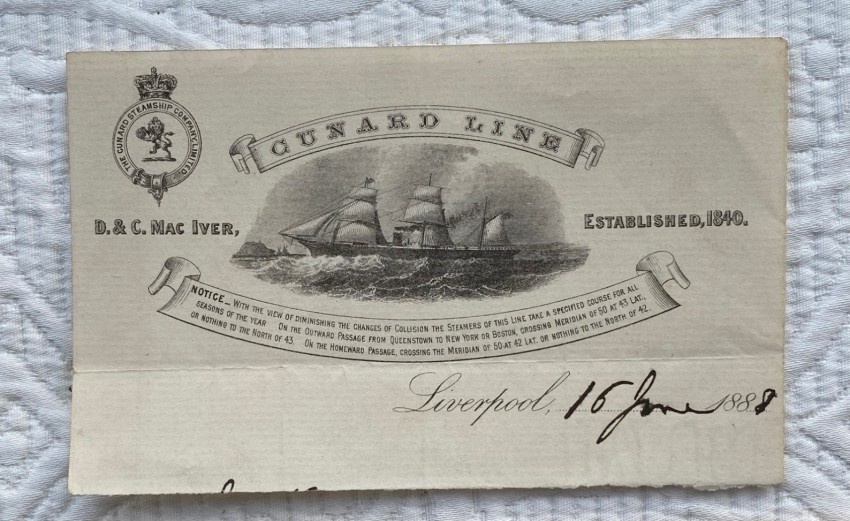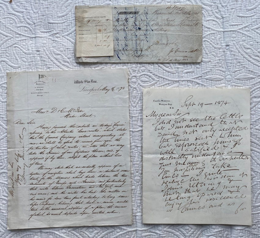 4.Ismay, Imrie & Co. A 1p. secretarial letter, signed ‘Ismay, Imrie & Co.’, to ‘Messrs. D & C. McIver’ [sic.], on White Star Line headed notepaper, dated ‘Liverpool May 16 1873’, quarto (10 14/ x 8 1/4in; 260 x 210mm). Asking for details of ‘the Atlantic “lane routes”, which [they understand ]… the Cunard Company intend inaugurating at once: we shall be glad to hear from you the particulars of such routes, in order that we may take the opinions of our Captains thereon, and, if approved by them, adopt the plan without loss of time. We may state that, we cordially approve of a system of navigation which lays down a distinct ocean track for the steamers which trade between the two continents of Europe and America, and particularly that route between Queenstown and New York and vice versa; and the writer has had the matter on his mind for some time past, intending to bring same before Conference..’ *An interesting letter, written shortly after news of the sinking of RMS Atlantic, with the loss of at least 535 people, reached the U.K.