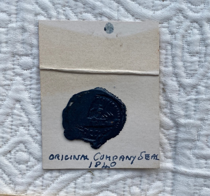 2.an envelope mounted with three copy photographs of earlier images of Sir Samuel Cunard (3 1/8 x 2 5/8; 79 x 66mm.), Sir George Burns and Charles MacIver [see images] - three of the four founding partners of what became the Cunard Line), also included is a wax impression of the original 1840 company seal. *The images of Cunard and MacIver may be important as I cannot find them re-produced anywhere else – these might be the only records of these images?