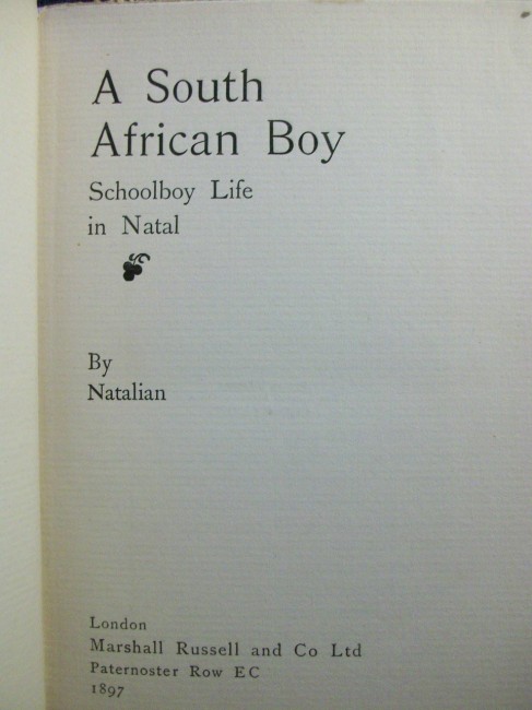 A kind of colonial "Tom Brown's Schooldays", representing school and college life in Natal at the close of the nineteenth century.It is stated that although in some cases fictitious names have been given, on others the real names of the actors have been used, whilst "the narrative from beginning to end is one of actual fact...