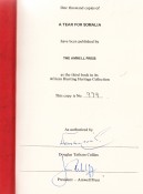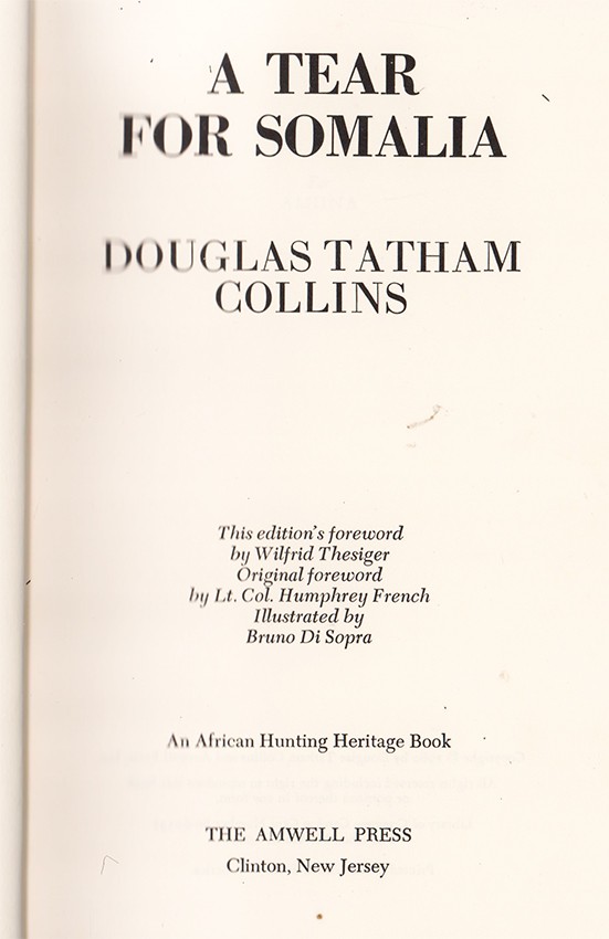 First Limitations page reads: One thousand copies of A Tear for Somalia have been published by the Amwell Press as the third book in its African Hunting Heritage Collection. This is copy is no 979 as authorised by the author and president of Amwell Press.