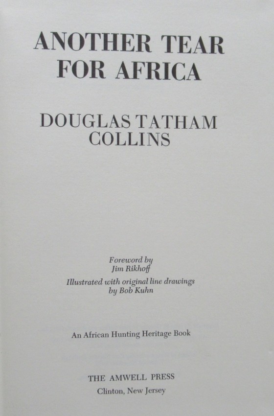 Another Tear for Africa has been published by The Amwell Press as the fourth book in its African Hunting Heritage Collection. This is numbered 122, and signed by Douglas Tatham Collins and Jim Rikoff-President of Amwell Press.