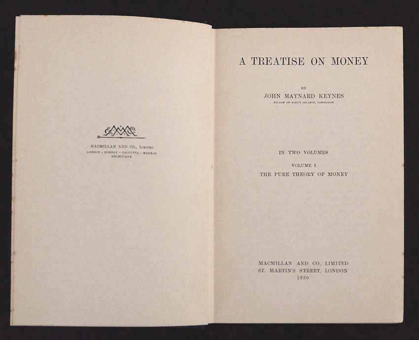 The first edition of this important work in 2 Volumes. Volume One is entitled: The Pure Theory of Money, and Volume Two: The Applied Theory of Money. 363 and 424pp. respectively. In the original blue cloth lacking the scarce dustwrappers.
