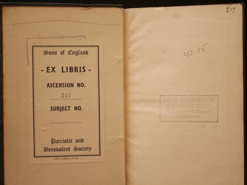 Vol.I: xxii + 334pp. Binding solid, internally clean with a single "Sons of England Patriotic & Benevolent Society Historical Research Committee" rubber stamp on the front end paper and one on the rear end paper. Bookplate on front paste down.