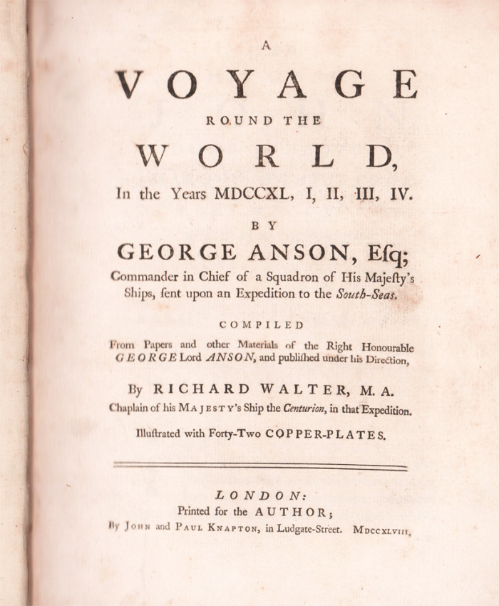 Although several private journals of the voyage had been published, the official version of events was published in London 1748, as A Voyage Round the World in 1740-4 by George Anson It was a great popular and commercial success and a 5th edition was already in print by 1749. As well as detailing the adventures of the expedition, it contained a great amount of useful information for future navigators and with 42 detailed charts and engravings, most based on drawings by Capt. Piercy Brett, it laid the basis for later scientific and survey expeditions by Captain Cook and others.