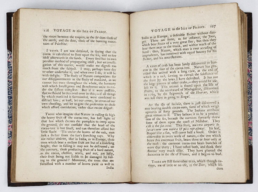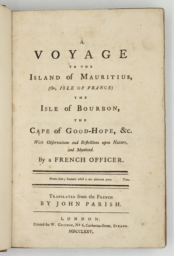 Mendelssohn (Sydney) South African Bibliography, volume 2, page 263, 'This work was written by the author of the well-known romance " Paul and Virginia," and is an account of the travels and voyages of Saint-Pierre from 1768 to 1771. In the latter part of 1771 the author visited Cape Town (on his homeward voyage), where he was entertained by " Monsieur Tolbac " (Governor Tulbagh), whom he describes as an able and affable man of eighty years of age. There is a somewhat pleasing account of the Cape Colony and its inhabitants, who are represented as being " a pensive set of people, who chuse rather to feel — than to converse or to argue. Perhaps want of subject is the cause of their taciturnity." Reference is made to the paucity of the European population, and it is observed that " Holland perhaps . . . fears the aggrandising of this colony, preferable in every respect to the mother country."'