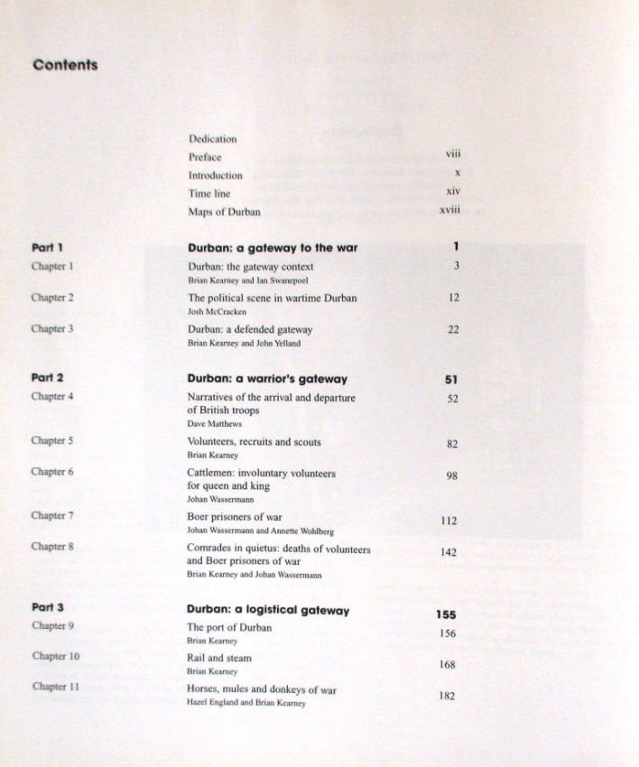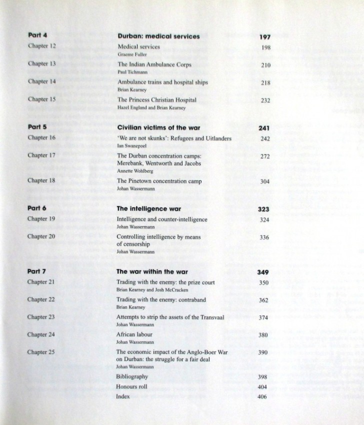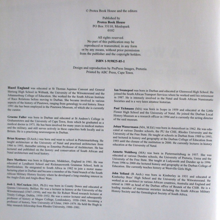 Pages xix + 416 including bibliography, Roll of Honour for Durban Volunteer Regiments and Imperial Troops and index.