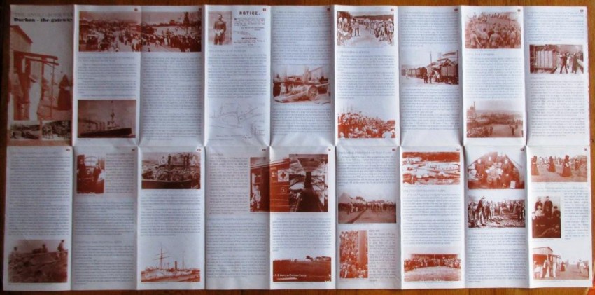 Showing 29 panels of text and illustrations of significant points of historical interest relating to the Anglo-Boer war in Durban and its environs. Accompanied by archive photographs and maps of Durban then and now with the relevant localities indicated on the current Durban map. Printed on both faces.