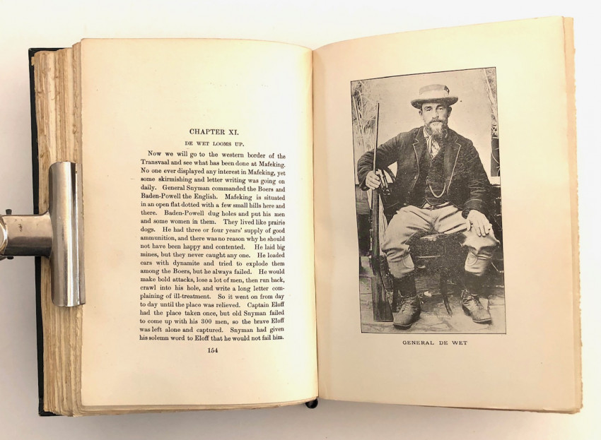 A very good copy of this fairly scarce Boer War book. 8vo. 411pp. which includes the 12pp. of prelims. Oddly this copy is lacking pp. iii - viii of the Preface - this seems to be a binding error as there is no evidence of removal of these pages - it appears that a single section has not been sewn in. There are many full page photographic plates throughout the volume. Bound in the original dark green cloth with a photographic onlay on the front cover. SABIB Vol. 1, Page 210.