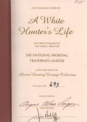 Limitations page reads: One thousand copies have been published by the Amwell Press for the National Sporting Fraternity Limited as the tenth book in its African Hunting Heritage Collection. This is copy is no.695 as authorised by the author and president of NFSL.