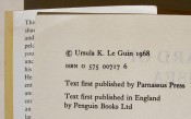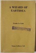 The original wrappers (paperback) have the purple stamp "UNCORRECTED" on the upper side. 191 pages and the double page map of Earthsea.