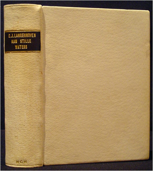 478 pages, bound in full white pigskin with a brown title label on the spine, marbled endpapers, top edge dyed dark blue, presentation inscription from the author on the front free endpaper and the initials N.C.H. in gold at the base of the spine, contents crisp. Contained in a marbled paper slip case which is very worn around the edges.
