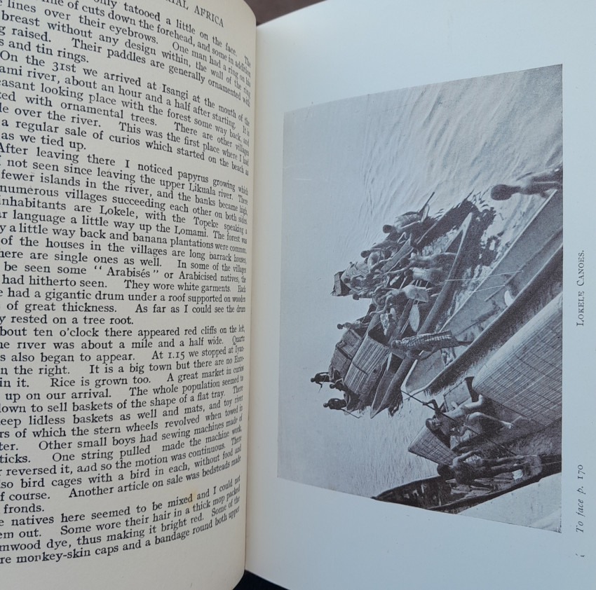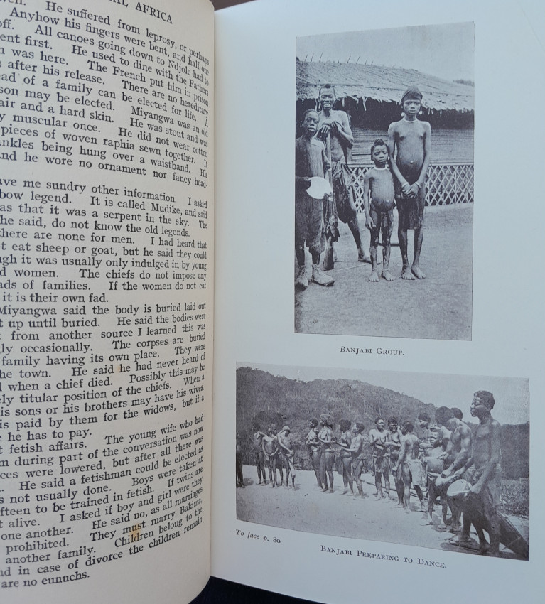 Half leather rebound with two raised bands and gilt lettering on spine, new end pages, 397 pages, b&w plates + map. Stamp and inscriptions on verso of title page, occasional light foxing on first and last pages, else very good.